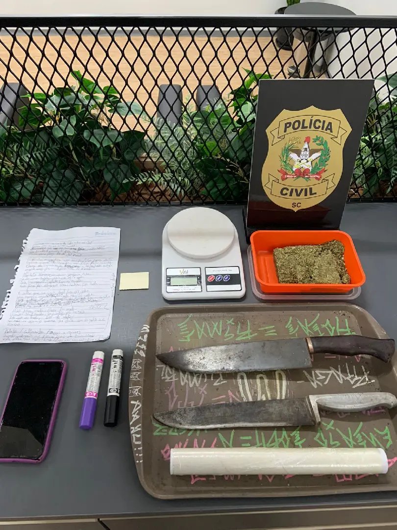 Ainda, foi apreendida uma carta contendo uma letra de rap com críticas em desfavor do prefeito de Brusque, por ter limpado a ponte do Bairro Rio Branco.