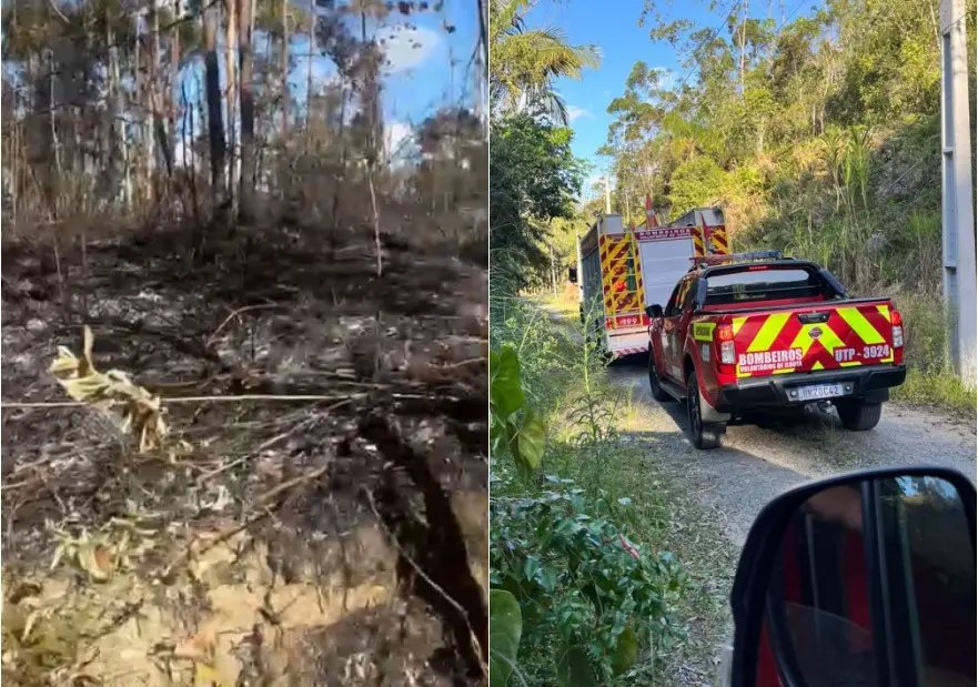 Um incêndio em vegetação mobilizou os bombeiros voluntários de Ilhota e colocou em risco uma residência na tarde de quinta-feira (23). A ocorrência foi registrada por volta das 14h43 na Estrada Geral Barranco Alto, no bairro Barranco Alto, em Ilhota.