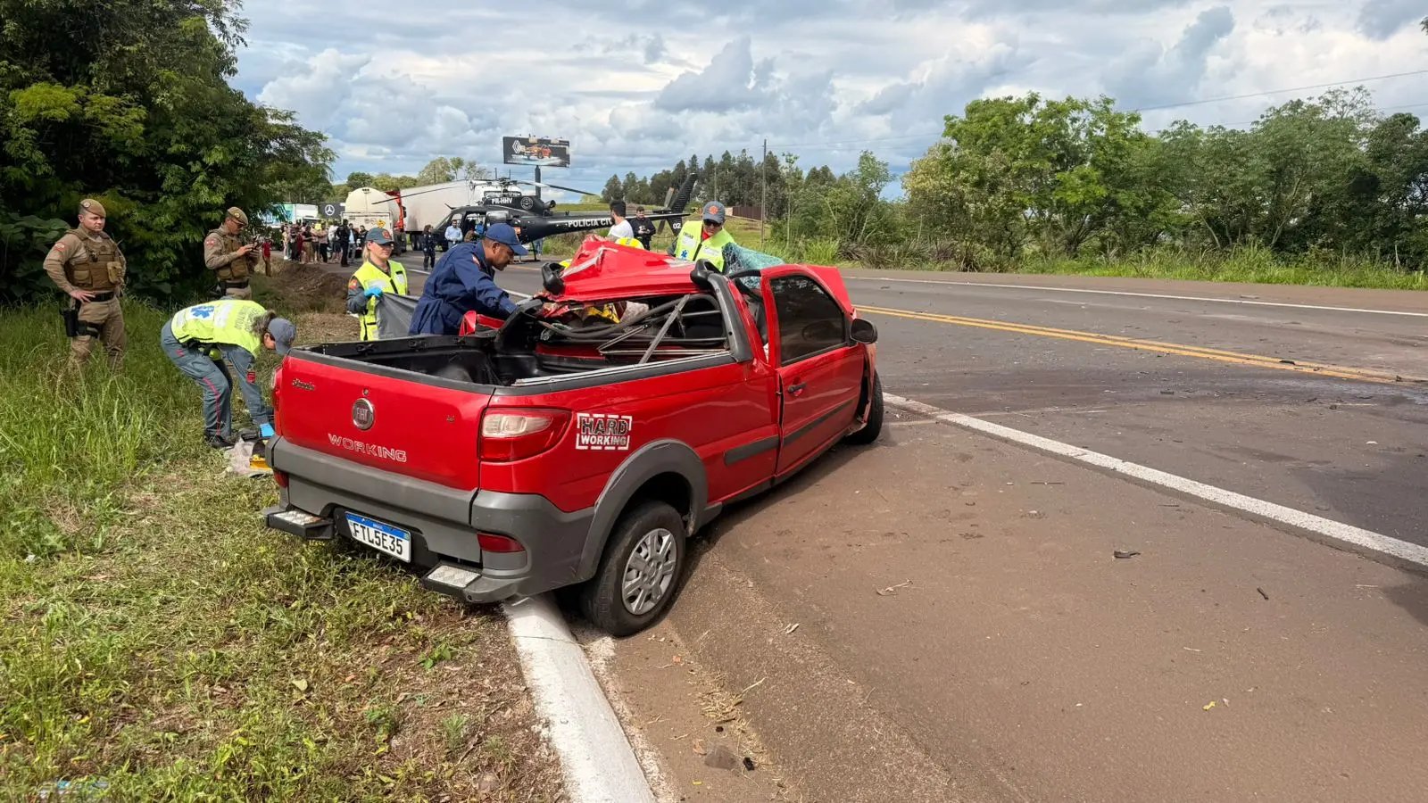 Segundo o Serviço AeroPolicial de Fronteira (Saer-Fron), a vítima dirigia uma Fiat Strada com placas de Chapecó, que teve a parte frontal bastante danificada. O socorro chegou rapidamente, mas ele já estava sem sinais vitais quando foi retirado do veículo