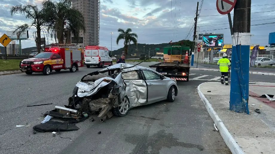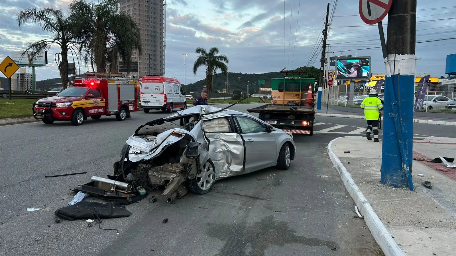 Na manhã desta quinta-feira (30), um acidente de trânsito deixou seis pessoas feridas após um carro sair da pista e ter a traseira completamente destruída em Balneário Camboriú.