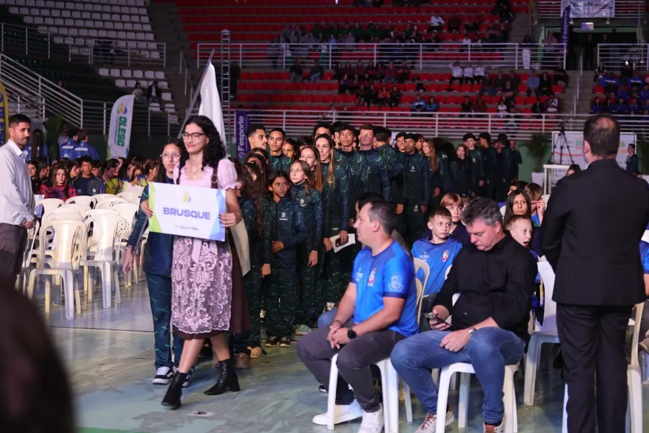A Arena Brusque foi palco, na noite desta sexta-feira (31), da cerimônia de abertura da 24ª Olimpíada Estudantil Catarinense (Olesc). O evento é promovido pelo Governo do Estado, por meio da Fesporte, em parceria com a Prefeitura de Brusque, e marca o início de uma das maiores competições estudantis de Santa Catarina.