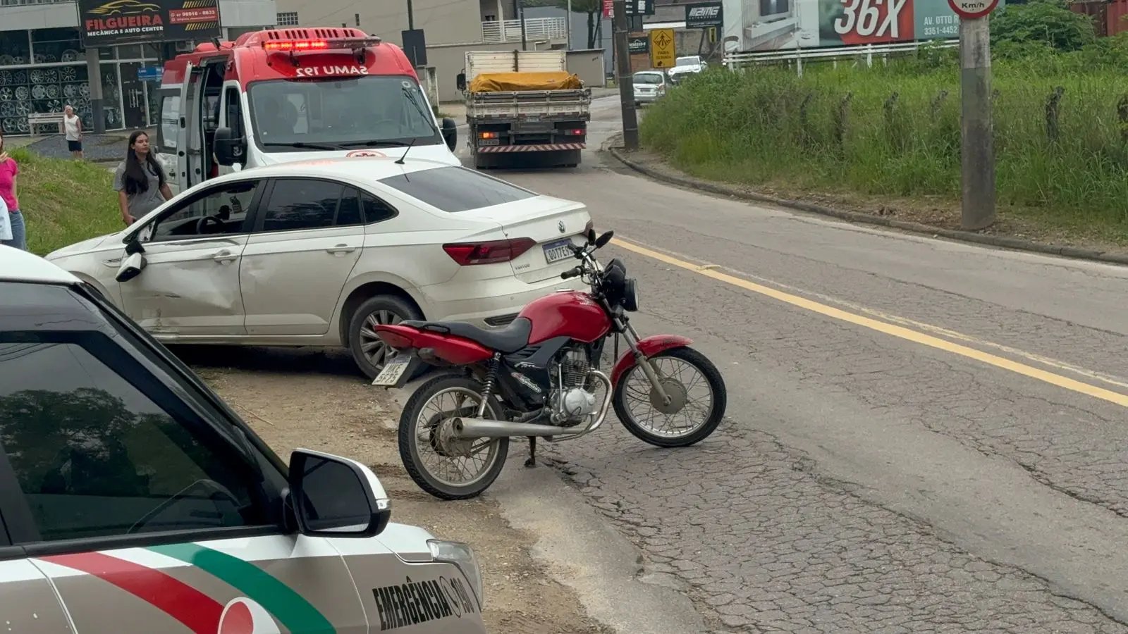 A passageira da moto sofreu ferimentos e precisou ser atendida dentro da ambulância do Samu, enquanto o piloto teve um corte na boca e recebeu cuidados ainda na rua. A condutora do carro não se feriu.