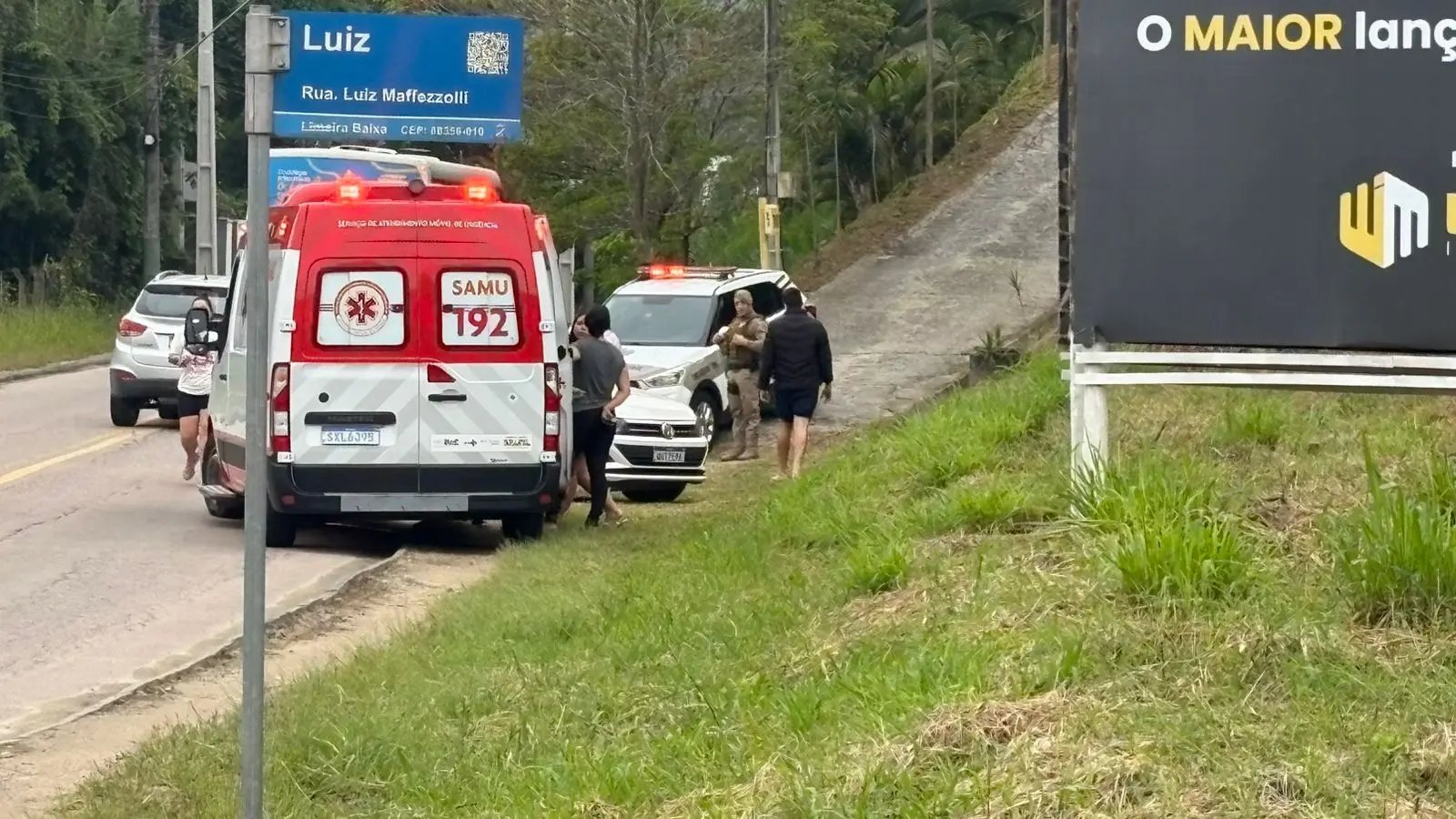 Um casal ficou ferido em um acidente entre carro e moto na manhã desta terça-feira (4), na Rua Alberto Muller, no bairro Limeira, em Brusque. A colisão envolveu um VW Virtus branco, conduzido por uma mulher de 30 anos, e uma motocicleta Honda CG Fan vermelha, pilotada por um homem de 26 anos que levava na garupa uma mulher de 23.