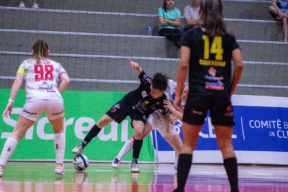 No primeiro tempo, ambas equipes criaram boas oportunidades. Com um jogo disputado, a pivô Eveli Calou aproveitou a falha das adversárias para abrir o placar para as brusquenses. Nos últimos segundos da primeira etapa, Petuxa apareceu livre na segunda trave para empatar a partida.