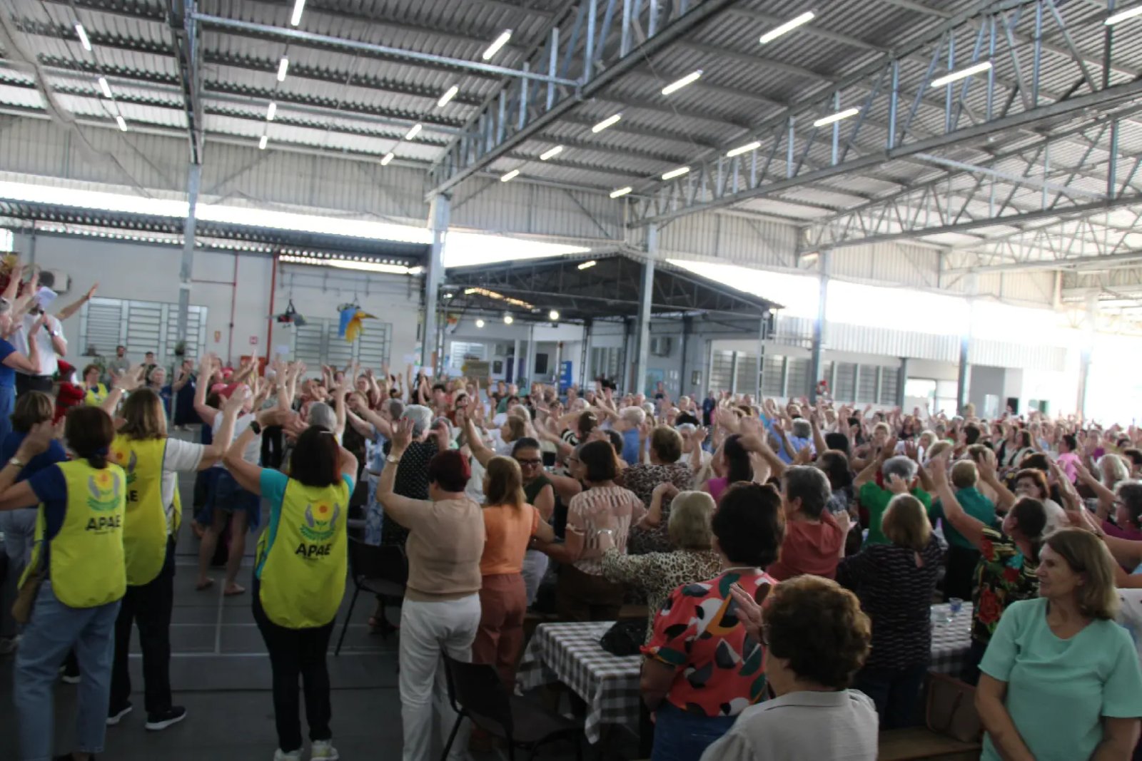O Clube de Mães da Associação de Pais e Amigos dos Excepcionais de Brusque (Apae de Brusque) reuniu cerca de 400 pessoas na tarde de terça-feira, 4 de novembro, para o seu tradicional Bingo de Natal. O evento encerrou em grande estilo os encontros mensais realizados pelo Clube ao longo do ano, e contou com participantes de todas as idades, que puderam se divertir com o bingo, roda da fortuna e o sorteio de rifas, além de um delicioso café da tarde. Na oportunidade, foi realizada uma bênção ecumênica, feita pelo padre Anísio José Schwirkowski, diretor da Casa Padre Dehon; e pelo pastor Marcos Gomes da Silva, da Igreja Calvário.