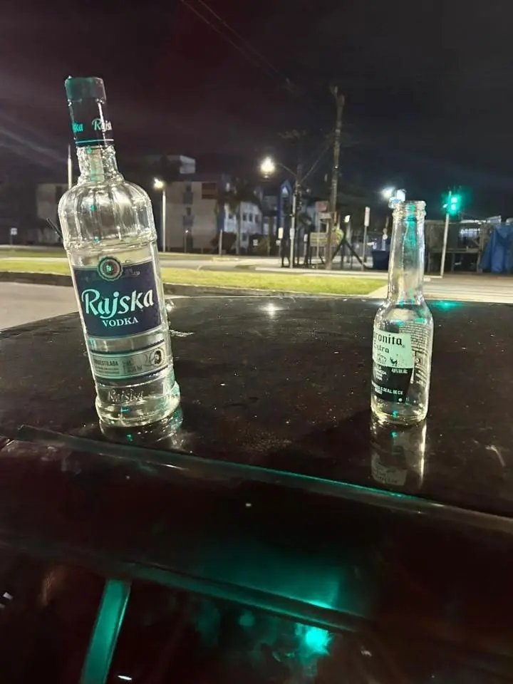O condutor admitiu ter ingerido várias latas de cerveja antes de dirigir, mas recusou-se a fazer o teste do bafômetro. Dentro do veículo, os agentes ainda encontraram garrafas de bebidas alcoólicas, e confirmaram que o homem não possuía Carteira Nacional de Habilitação (CNH).