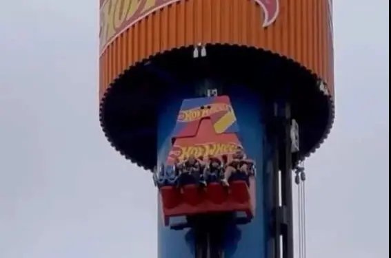 O brinquedo permaneceu parado por cerca de 15 minutos, tempo em que os visitantes ficaram suspensos no alto. Quando a descida foi liberada, a estrutura desceu lentamente, e o público que acompanhava do solo aplaudiu o retorno seguro dos passageiros.