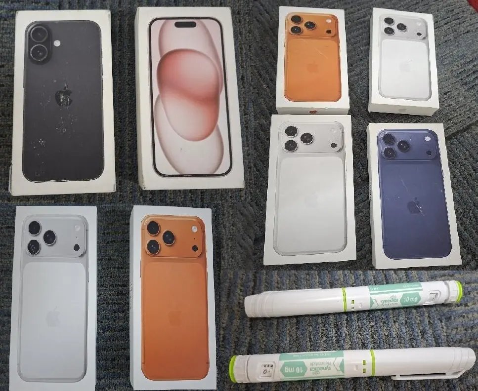 Em Itajaí, a equipe encontrou com elas oito aparelhos iPhones, sendo estes modelos 15, 16 e 17, somando aproximadamente R$ 62 mil reais, mais duas canetas emagrecedoras Retatrutida, do laboratório Synedica, que está em fase experimental no Brasil.