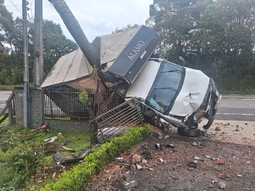 Segundo a Polícia Militar Rodoviária (PMRv), a vítima era passageira de uma Iveco Daily conduzida por um homem de 31 anos. O motorista relatou que seguia sentido Campo Alegre a Joinville quando perdeu o controle da direção, saiu da pista e bateu contra uma palmeira e o muro de uma residência às margens da rodovia. O impacto danificou a cerca e o portão do imóvel.