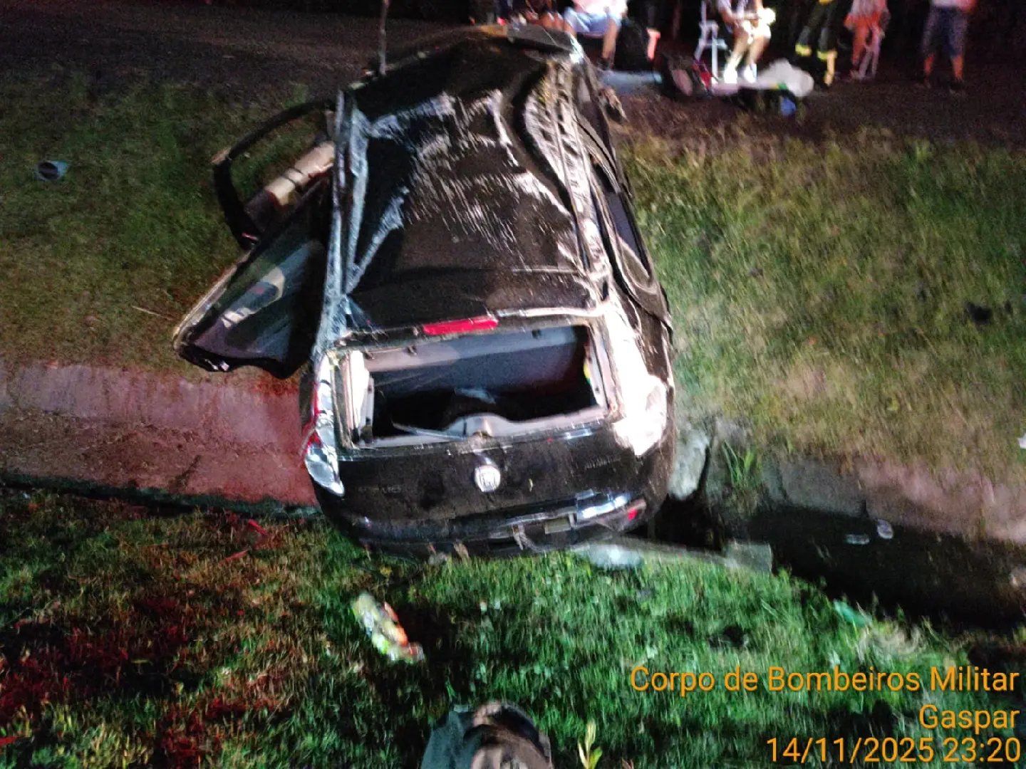 Um veículo capotou na BR-470, na região da Margem Esquerda, em Gaspar, na noite desta sexta-feira (14), deixando um jovem de 19 anos ferido. As equipes do Corpo de Bombeiros e do SAMU foram acionadas para atender à ocorrência, que envolveu outras três pessoas.