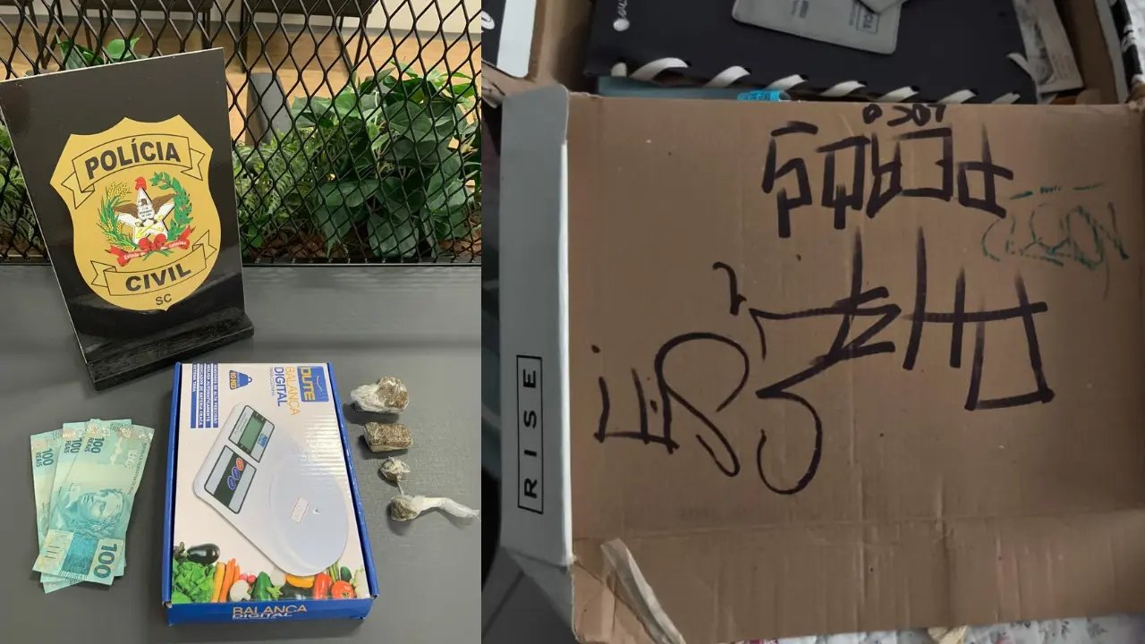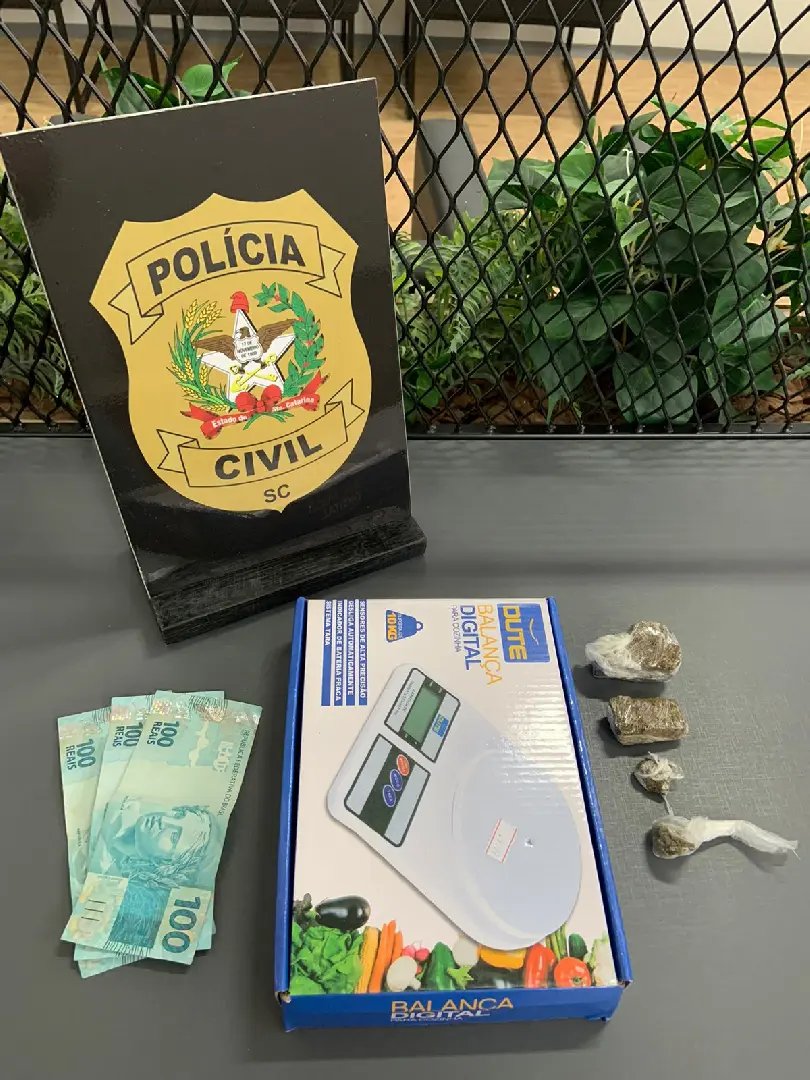 Durante a busca e apreensão, foram apreendidas porções de maconha, uma caixa de balança digital contendo resquícios de maconha, dinheiro e um smartphone, que será analisado de forma completa na continuidade da investigação.