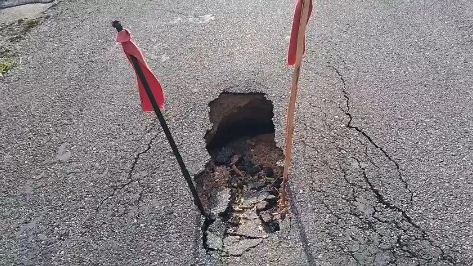 Para sinalizar o perigo, os moradores improvisaram com pedaços de madeira e uma bandeirinha vermelha, alertando quem passa pela via. Apesar de ainda não ter registrado acidentes graves, os moradores relatam situações perigosas: “Um carro quase caiu dentro à noite, é escuro e não dá para ver”, disse outro morador.