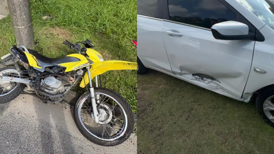 Segundo informações apuradas no local pela Cidade FM, a condutora do Onix, de 33 anos, seguia em direção ao bairro São Pedro quando iniciou a conversão para acessar o estacionamento. No sentido contrário trafegava o motociclista, que acabou atingindo a lateral do veículo e, na sequência, colidiu contra um poste. A moto teve danos consideráveis, incluindo o guidão bastante entortado.