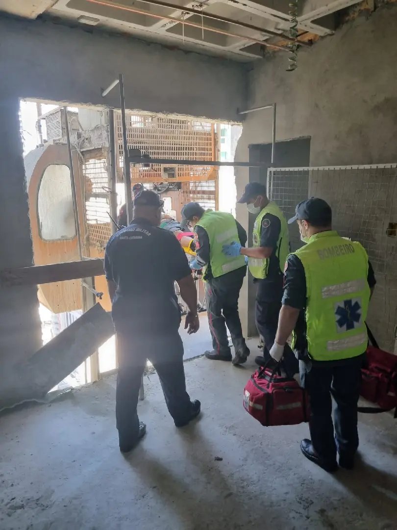 O trabalhador estava consciente e orientado quando a equipe de resgate chegou, apresentando fortes dores no braço esquerdo, com suspeita de fratura de rádio e ulna, além de possível fratura em uma das pernas.