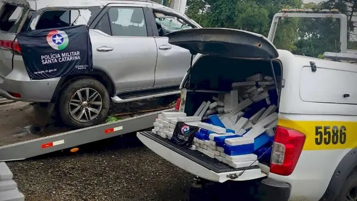 Ao chegar ao local, os policiais encontraram o veículo capotado às margens da rodovia. As placas instaladas eram de numeração desconhecida, levantando suspeitas. A partir da identificação do chassi, foi constatado que a caminhonete, uma Toyota Hilux era, na verdade, emplacada no município de Tupã, em São Paulo, e possuía registro de furto na cidade de Penha.