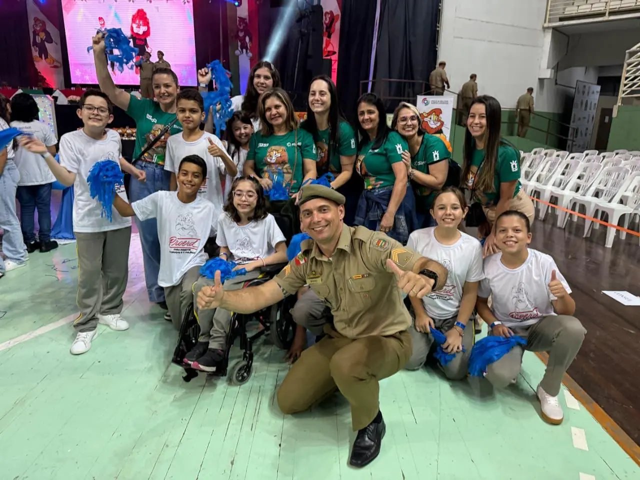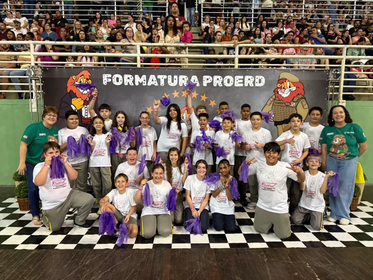 Na noite desta quarta-feira (26), a Polícia Militar de Santa Catarina (PMSC), por meio do 18º Batalhão de Polícia Militar (BPM), realizou a formatura de 2.265 alunos do Programa Educacional de Resistência às Drogas e à Violência (Proerd), representando 37 escolas do município. O evento reuniu autoridades civis e militares, entre elas o comandante do 18º BPM, tenente-coronel Pedro Carlos Machado Júnior, o comandante regional da polícia militar, coronel Ronaldo da Silva Cruz, o prefeito em exercício Deco Batisti, além de professores, pais e familiares dos formandos.