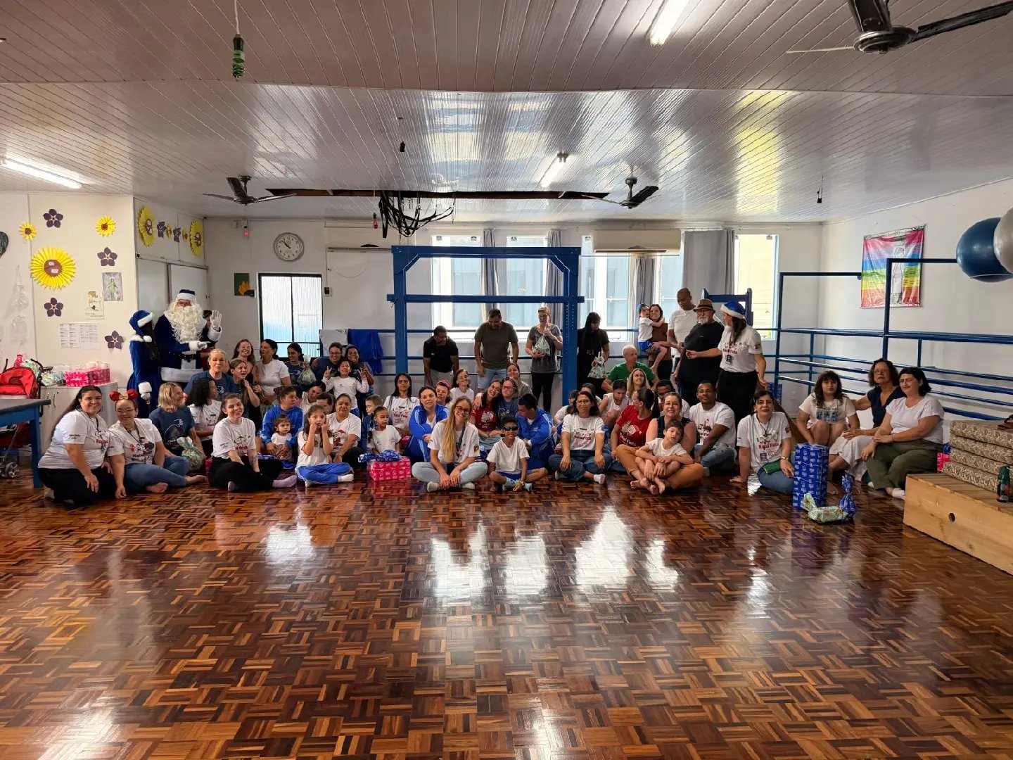 O projeto Natal Feliz Havan abriu oficialmente suas ações de 2025 com a entrega de presentes na Escola Charlotte, em Brusque, realizada nesta quarta-feira, 26. A equipe de voluntários levou brinquedos e doces para as crianças e adultos atendidos pela instituição. A presença do Papai Noel trouxe ainda mais encanto ao momento, que movimentou alunos e colaboradores.