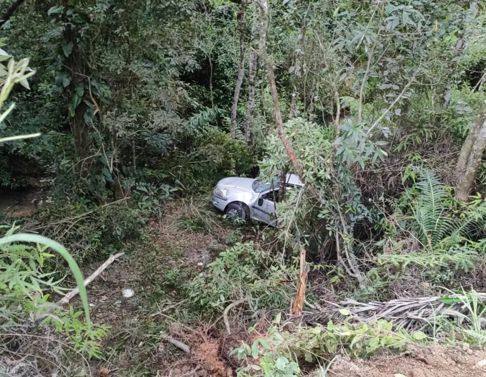 Na tarde desta sexta-feira (28), um jovem de 23 anos ficou preso no próprio carro após cair em uma ribanceira de cerca de quatro metros na rua Pedro Berti, no bairro Bateias, em Gaspar.