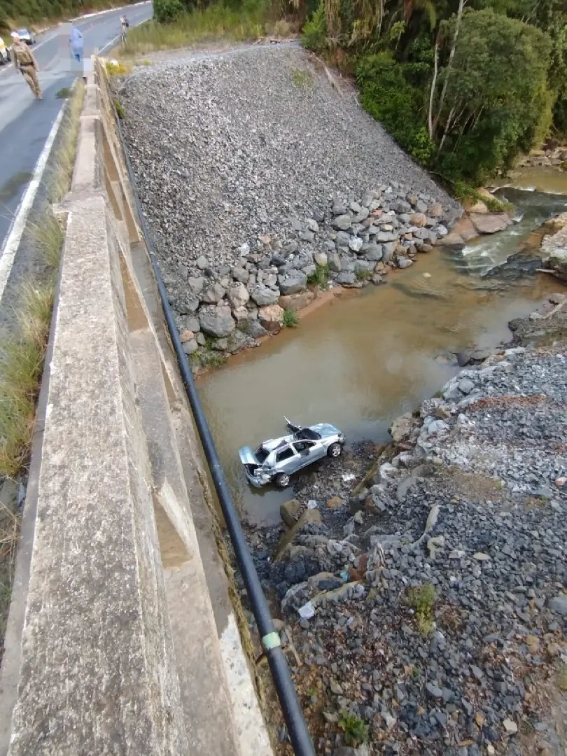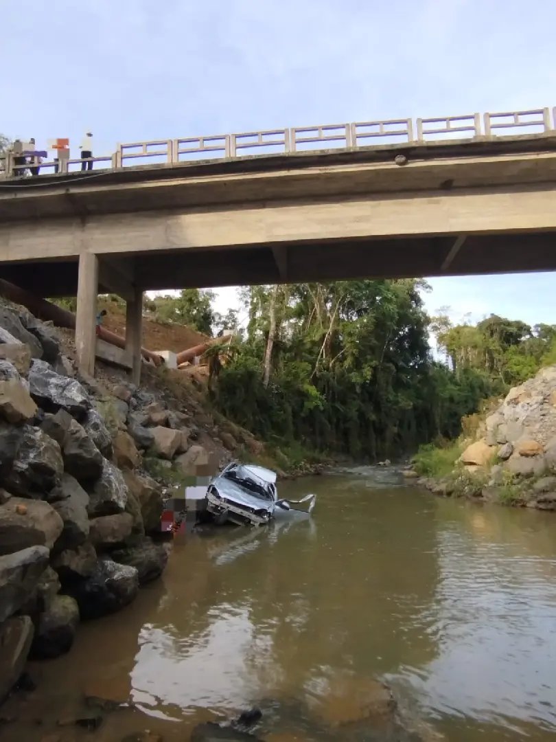 Um homem morreu na tarde desta sexta-feira (28) e duas mulheres ficaram feridas após um carro cair de uma ponte de cerca de 12 metros na SC-350, próximo ao Rio Bonito, em Ituporanga.
