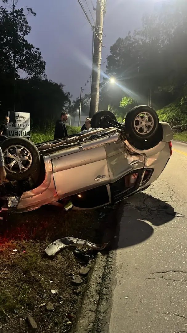 O primeiro veículo era um Hyundai Tucson, que acabou capotando após a batida. O motorista, um homem de 29 anos, estava fora do carro, consciente e orientado. Ele apresentava um corte profundo na cabeça, recebeu atendimento no local e foi encaminhado ao Hospital Azambuja.