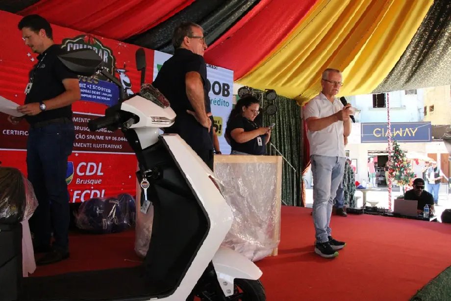 A Câmara de Dirigentes Lojistas de Brusque (CDL Brusque) realizou na manhã de sábado, 6 de dezembro, na praça Barão de Schneeburg, o primeiro sorteio da promoção "Comprar Aqui dá Sorte 2025".