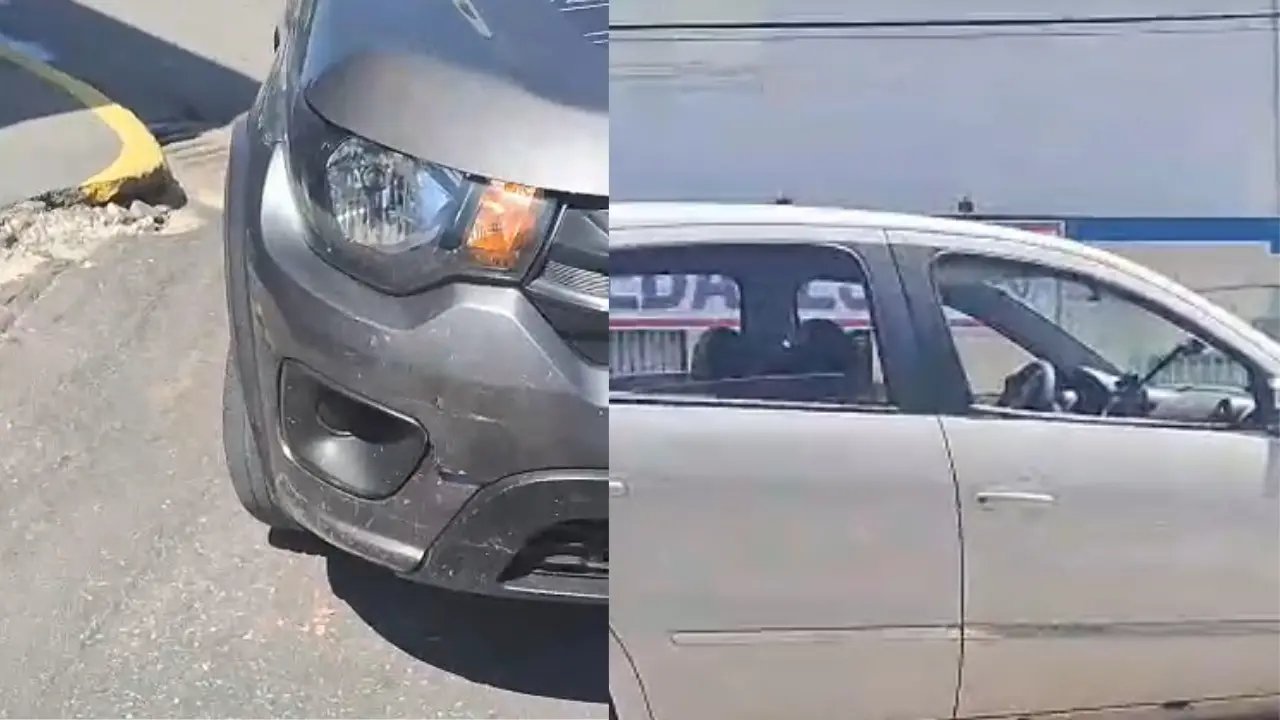 O impacto atingiu a lateral do para-choque de seu Fiat Mobi, causando danos leves. Apesar do susto, ninguém ficou ferido.