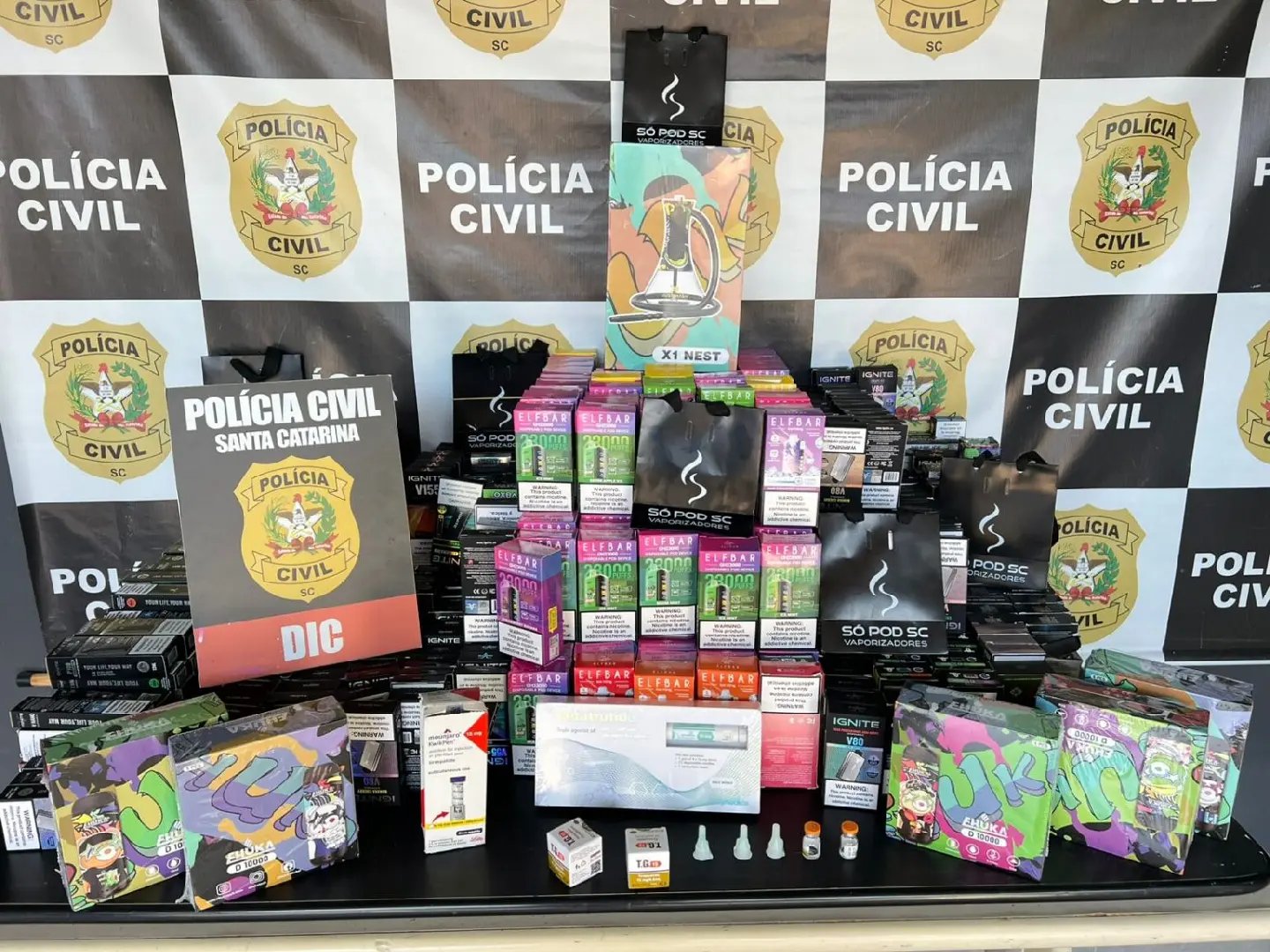 Segundo a investigação do Departamento de Investigação Criminal (DIC) de Blumenau, a suspeita vinha vendendo os produtos de forma irregular pela internet. Durante a operação, os policiais encontraram grande quantidade de cigarros eletrônicos espalhados pelo apartamento e medicamentos armazenados na geladeira. Também foram apreendidos um caderno com anotações das vendas e diversas sacolas personalizadas usadas para entregar os produtos.