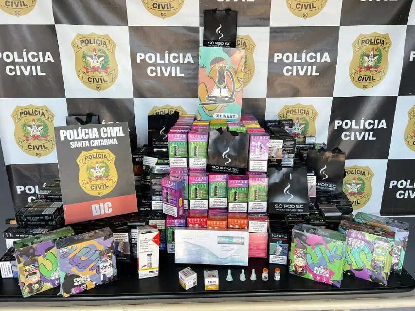 A Polícia Civil de Santa Catarina prendeu em flagrante uma mulher de 30 anos, suspeita de comercializar cigarros eletrônicos e medicamentos para emagrecimento, entre eles Tirzepatida e Retatrutida, sem procedência e sem registro na Anvisa. O flagrante ocorreu na sexta-feira (5), no bairro Fortaleza, em Blumenau.