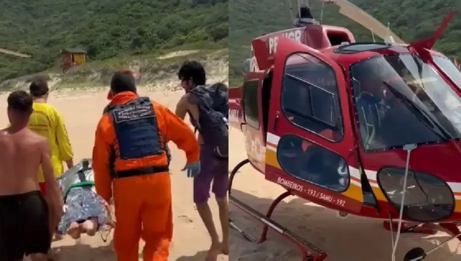 Uma mulher de 32 anos foi socorrida por equipes do Corpo de Bombeiros Militar após ser mordida por uma capivara enquanto nadava na lagoa da Lagoinha do Leste, em Florianópolis, na tarde desta segunda-feira (8). A vítima precisou ser retirada do local por meio do helicóptero Arcanjo, devido à gravidade dos ferimentos e ao difícil acesso da região.