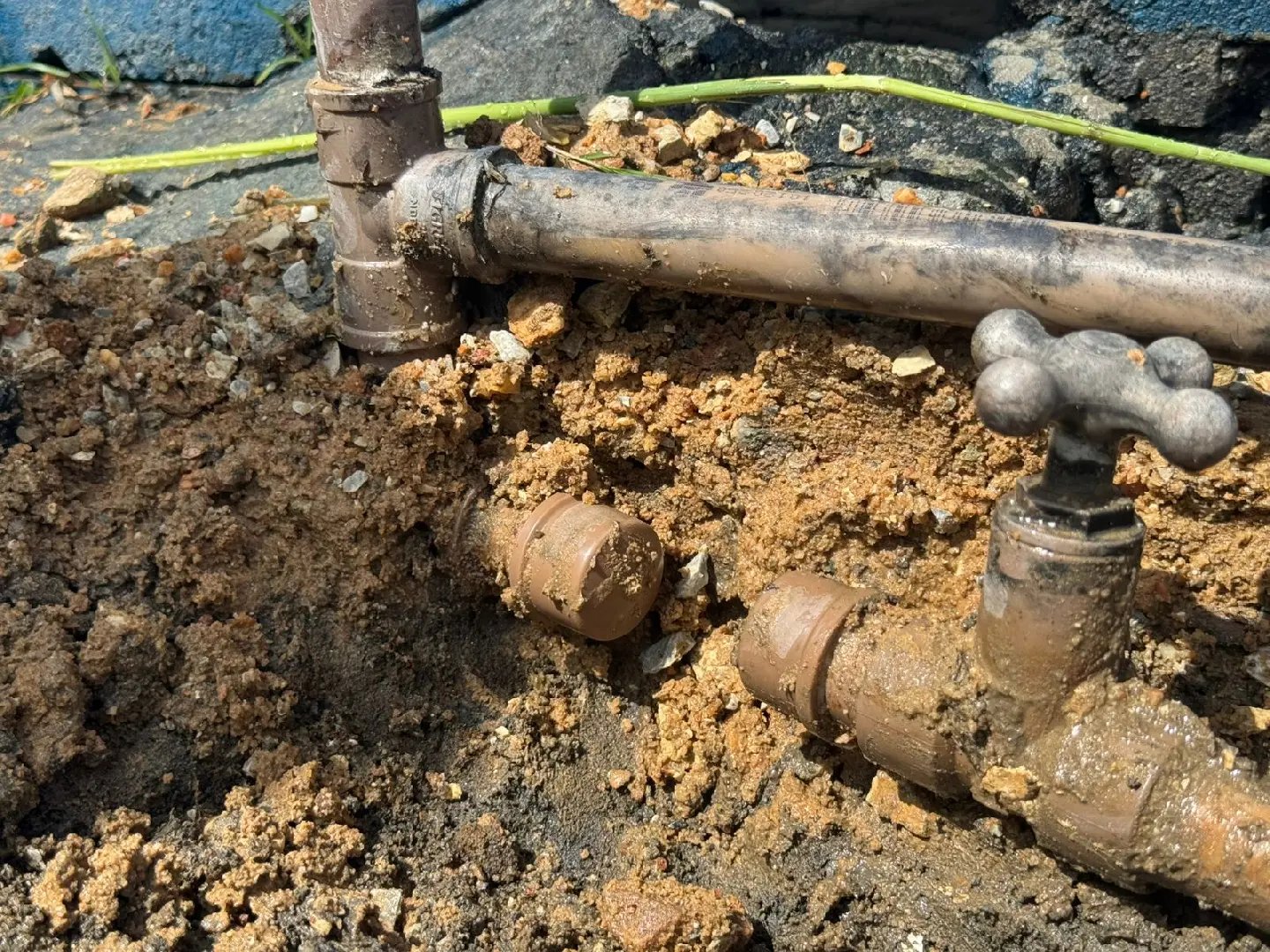 No local, as equipes realizaram as escavações para localizar o local da ligação clandestina. Durante o processo, foram encontrados registros falsos e tubulação antiga que escondiam a irregularidade.