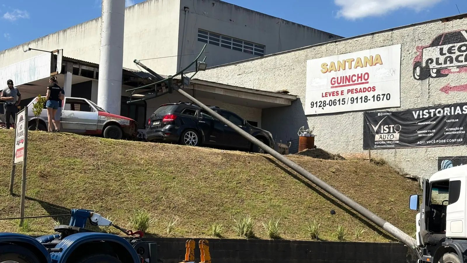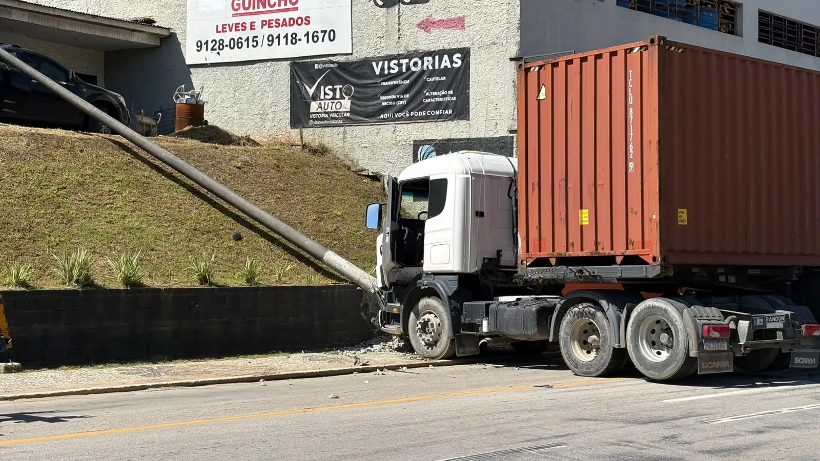Um acidente entre dois caminhões fez com que um deles atingisse um poste de energia na manhã desta quarta-feira (17), na Avenida Beira-Rio, no centro de Brusque. O fato aconteceu por volta das 09h20, e ainda acabou acertando um terceiro veículo que estava estacionado em um pátio superior.