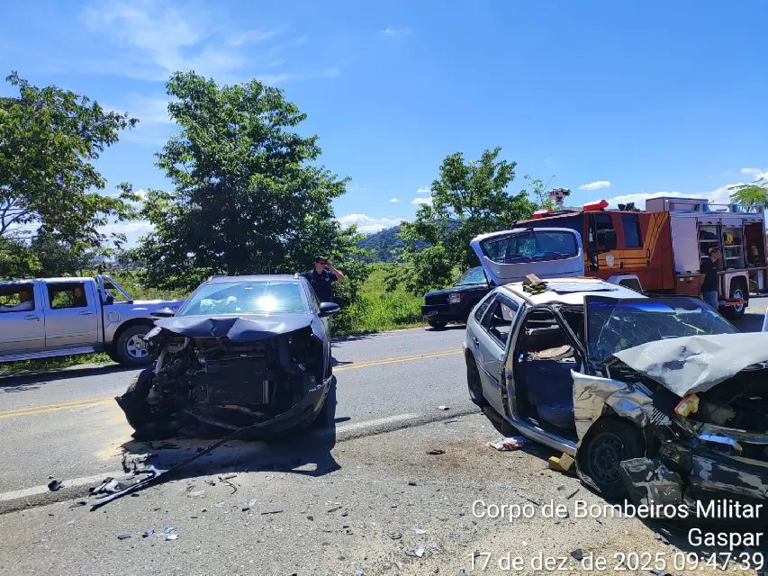 Uma colisão frontal entre dois carros deixou três pessoas feridas na manhã desta quarta-feira (17). O acidente ocorreu por volta das 09h09 e mobilizou equipes de resgate e atendimento médico na rua Hercílio Fides Zimmermann, em Gaspar.