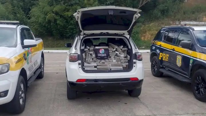 A abordagem ocorreu por volta das 6h, no km 179 da rodovia, na divisa entre Mafra e Campo do Tenente, no Paraná. Durante a fiscalização, as equipes pararam um Jeep Compass branco e encontraram no interior do veículo 686 tabletes de maconha, que totalizaram 443,71 quilos da droga.