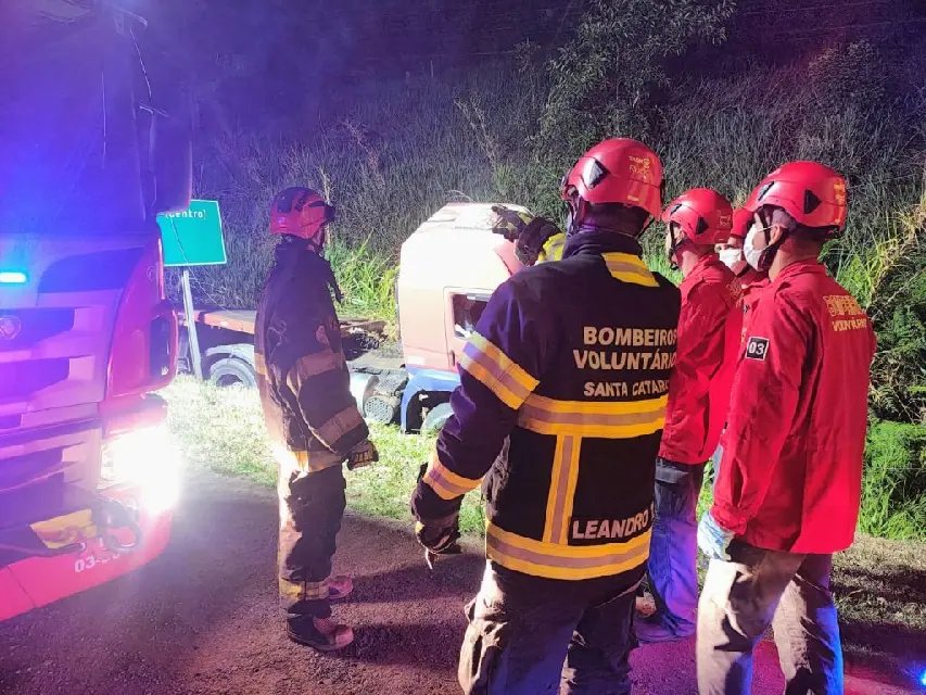 A carreta, com placas de Rio Negrinho, tinha apenas o motorista, que permaneceu consciente e em estado estável, sendo monitorado pelas equipes até que a situação fosse considerada segura.