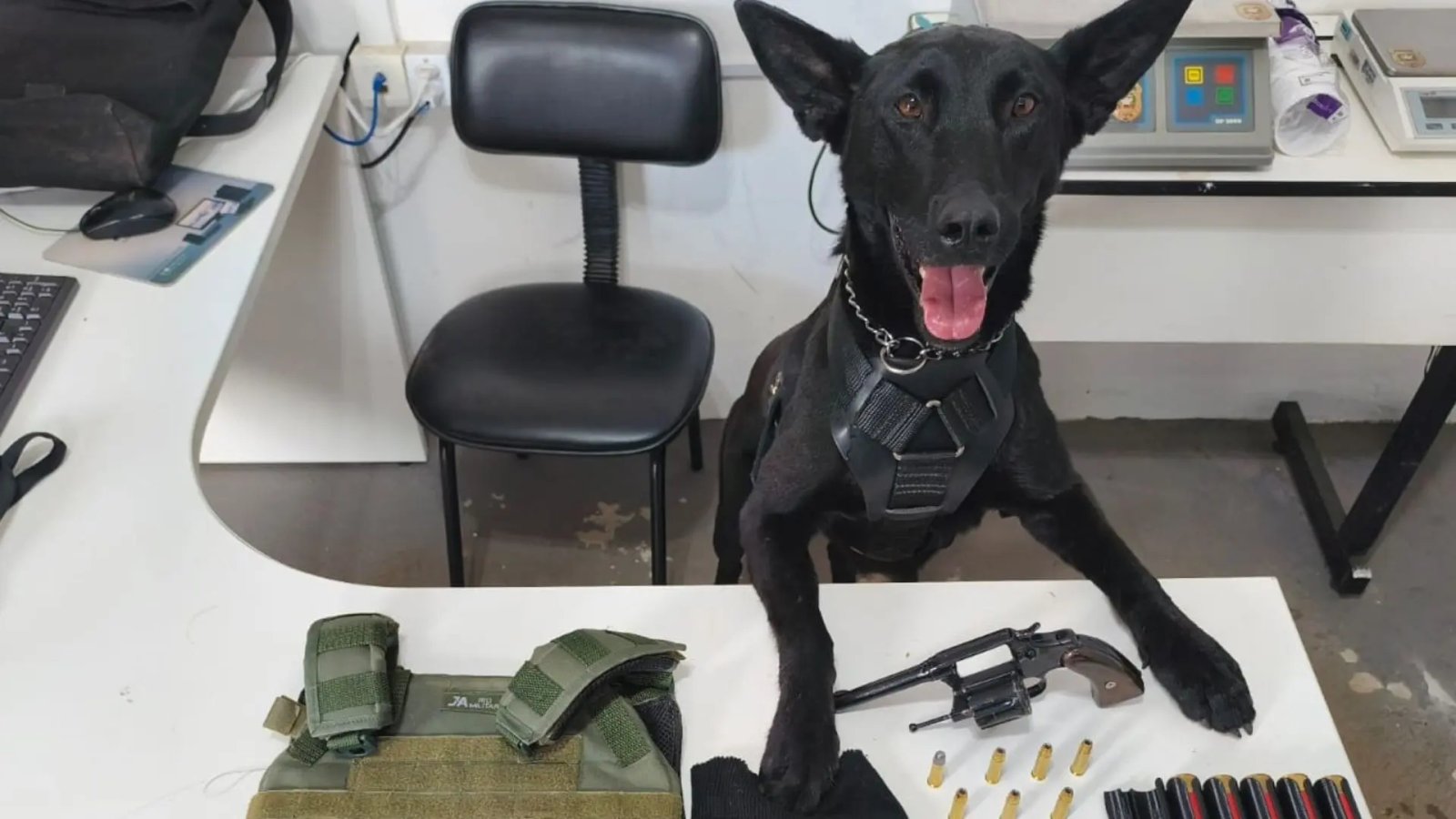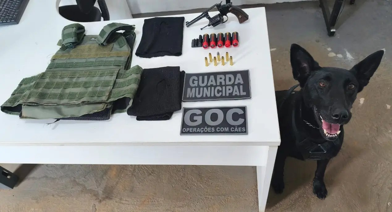 Com o jovem de 19 anos, os agentes apreenderam um revólver calibre .38 com numeração suprimida, municiado com quatro munições intactas. No interior do veículo, também foram encontrados um colete balístico com placa metálica, duas toucas ninja, cinco munições calibre 12 com porta-munições e três munições calibre .38 intactas.