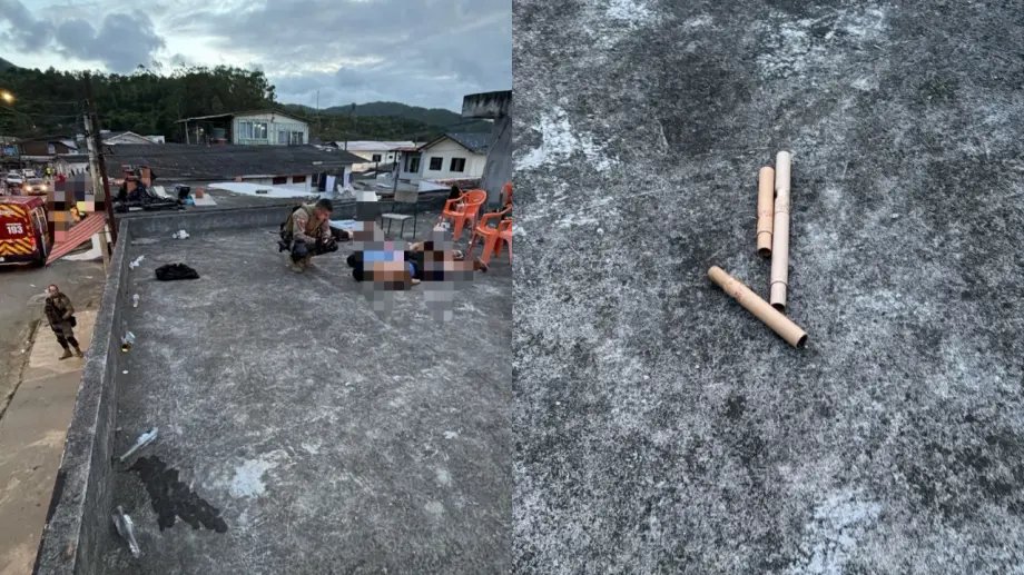 Na laje do imóvel, um segundo homem, de 19 anos, também foi abordado. Com ele, foram localizados 11 foguetes. Ainda conforme a polícia, dois rojões chegaram a estourar muito próximos a um dos policiais da base, que precisou de atendimento médico após ser constatada lesão no tímpano.