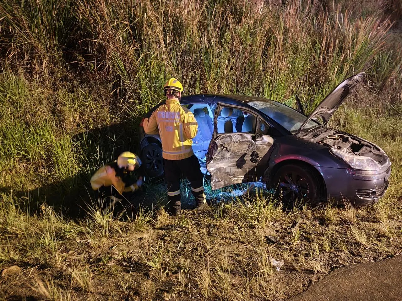 No total, cinco pessoas se envolveram no acidente. Uma delas estava no banco traseiro de um dos veículos e não conseguia sair sozinha. A vítima reclamava de fortes dores no peito e apresentava momentos de confusão, sendo retirada com cuidado e encaminhada para atendimento médico.
