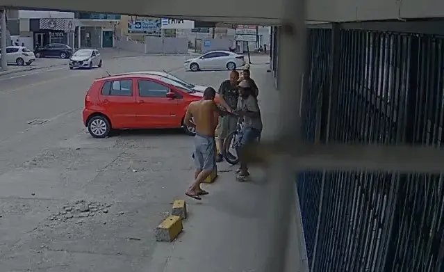 As imagens mostram o homem efetuando o disparo contra a vítima. Após o crime, o suspeito teria roubado a bicicleta de uma terceira pessoa para fugir do local.