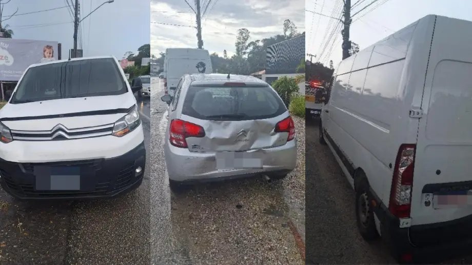 Uma colisao envolvendo três veículos mobilizou equipes de emergência na tarde de terça-feira (23), após um engavetamento registrado na rodovia Ivo Silveira. O acidente ocorreu por volta das 15h16, no bairro Bateias, em Gaspar.