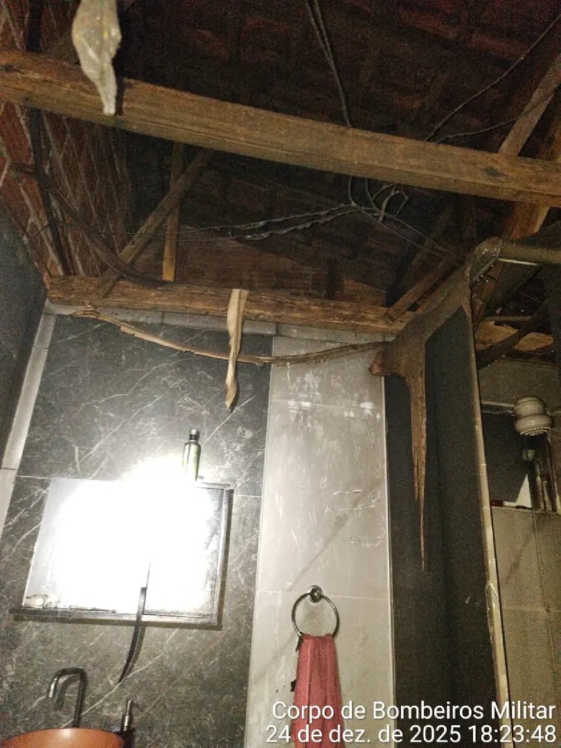 Como medida preventiva, a energia elétrica do imóvel foi desligada e os moradores receberam orientações de segurança. A Polícia Militar também prestou apoio à ocorrência. As causas do incêndio serão apuradas por meio de perícia técnica.