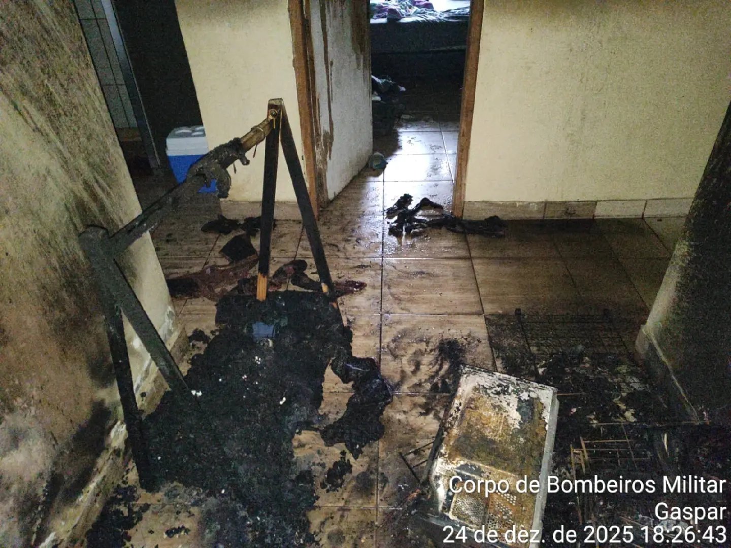 O atendimento foi realizado por volta das 17h57, pelo Corpo de Bombeiros Militar de Gaspar, após acionamento do COBOM. No local, as equipes constataram que o incêndio havia atingido um banheiro, uma copa, uma sala de estar e parte do forro da residência. As chamas já haviam sido controladas pelos próprios moradores antes da chegada das viaturas.