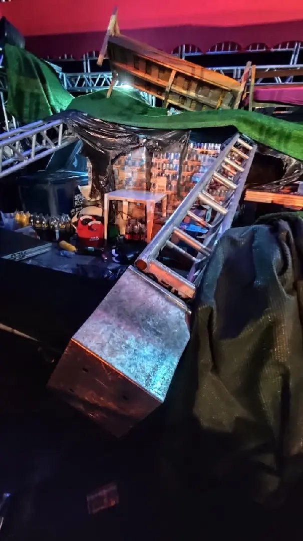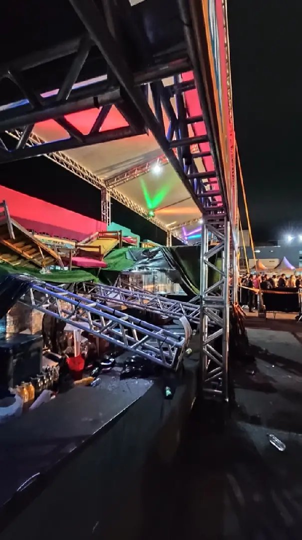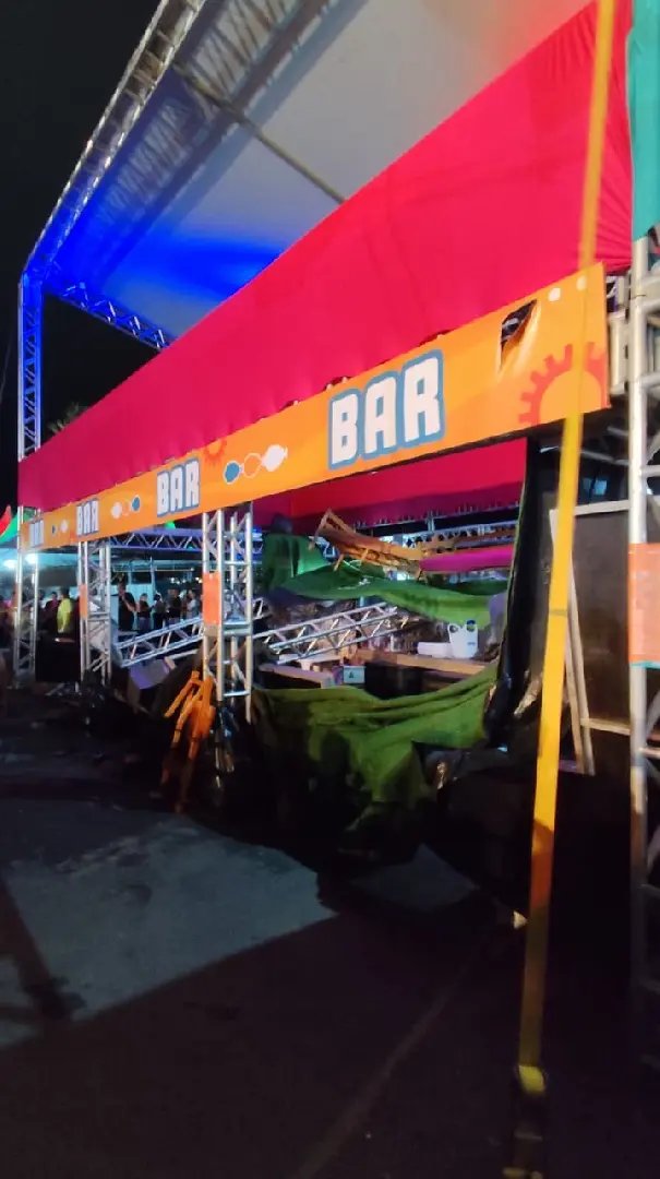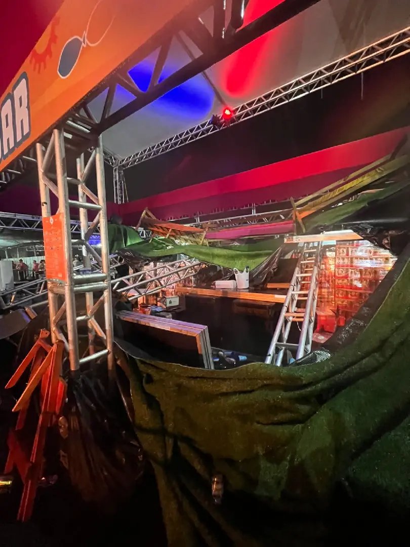 Após a avaliação da estrutura, a área foi isolada e evacuada por segurança. A desmontagem do local deve ocorrer após o evento.