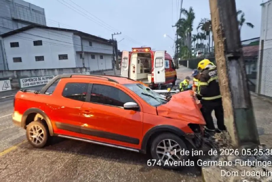 O acidente ocorreu por volta das 5h03, na Rua Max Furbringer, no bairro Jardim Maluche. O condutor do veículo, um homem que não teve a identidade divulgada, sofreu ferimentos leves e foi encaminhado ao Hospital Azambuja para atendimento médico.