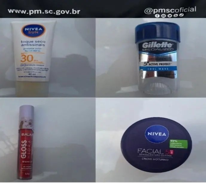 Durante a abordagem, foram identificadas duas mulheres, de 46 e 26 anos, e um homem de 35 anos. Com o trio, os policiais encontraram diversos produtos de higiene e beleza furtados do estabelecimento. Conforme a PM, o homem foi apontado como responsável por colocar os itens dentro da bolsa de uma das mulheres.
