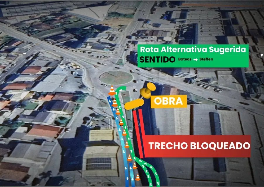 Durante a execução dos trabalhos, o sentido Bateas - Steffen ficará totalmente interditado. Para minimizar os impactos na circulação e assegurar a proteção de condutores e pedestres, a empresa responsável pela obra, em conjunto com a equipe de sinalização, atuará no local com orientação e dispositivos viários adequados.