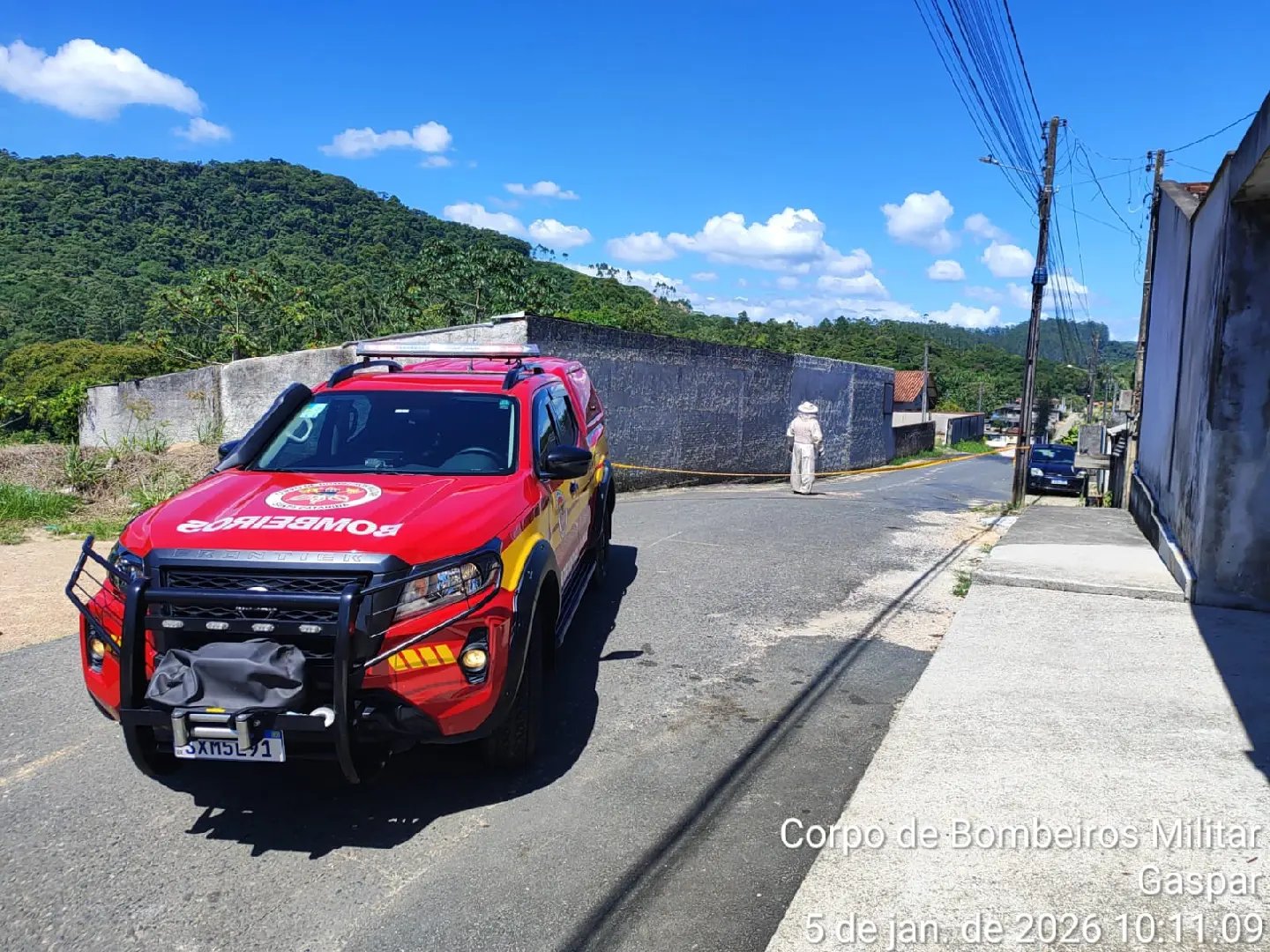 A vítima foi encaminhada consciente e orientada ao pronto-socorro de Gaspar. A via foi isolada e os moradores orientados a não acessar o local até que as abelhas se afastassem e a situação fosse normalizada.