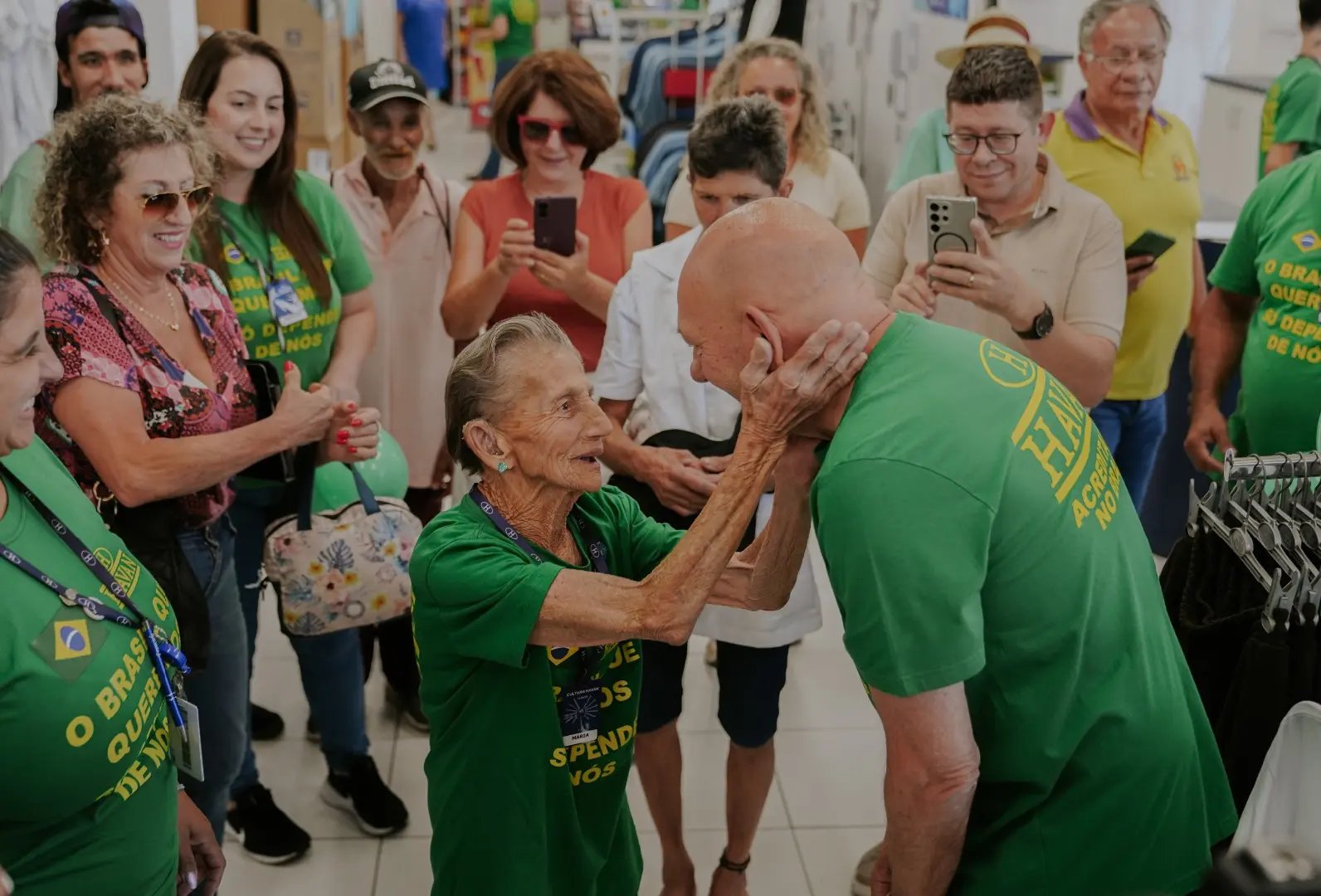 O empresário Luciano Hang e os colaboradores da Havan Castelo, em Blumenau (SC), receberam com aplausos e muita alegria dona Maria Wostehoff, de 91 anos, na manhã desta segunda-feira, 5. O clima de festa marcou o primeiro dia de trabalho da nova colaboradora da varejista.