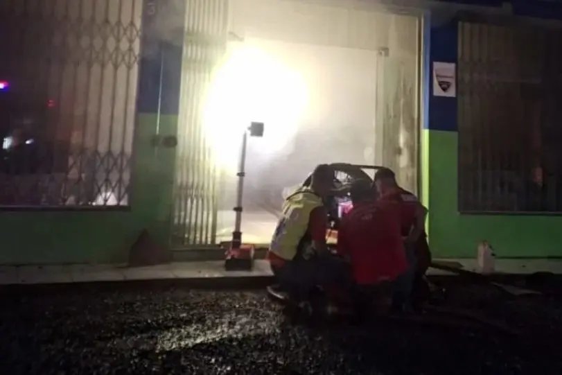 Para entrar no comércio, as equipes precisaram romper a grade de proteção, quebrar o cadeado e forçar a porta de vidro da entrada principal. Por segurança, a energia elétrica do local foi desligada antes do início do combate direto às chamas.