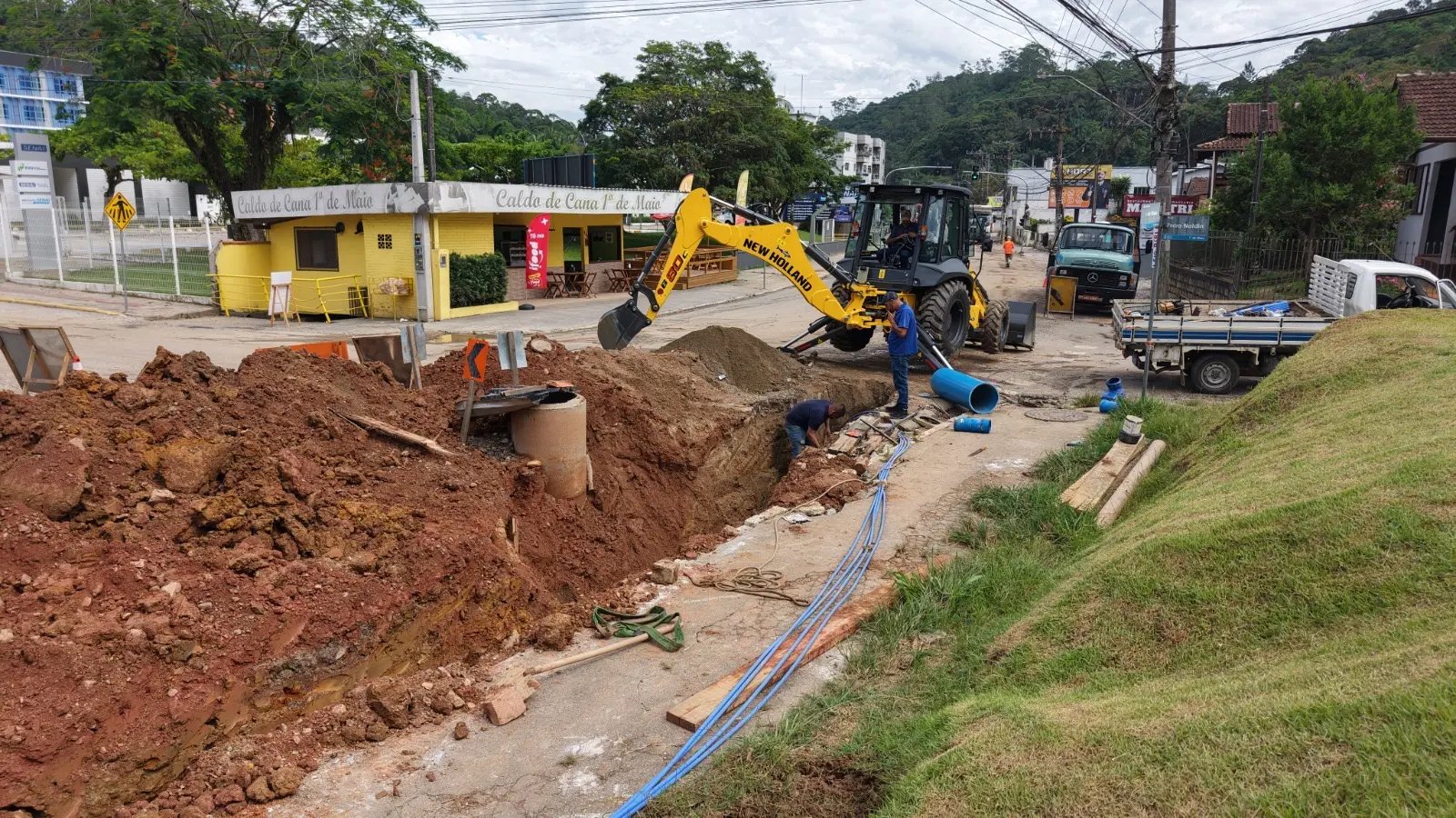 Junto à obra de drenagem que está sendo executada na Avenida Primeiro de Maio, no bairro de mesmo nome, o Samae de Brusque também realiza a substituição da tubulação de água tratada. A melhoria ocorre em aproximadamente 800 metros da via, no mesmo trecho em que estão sendo implantadas as galerias pluviais.