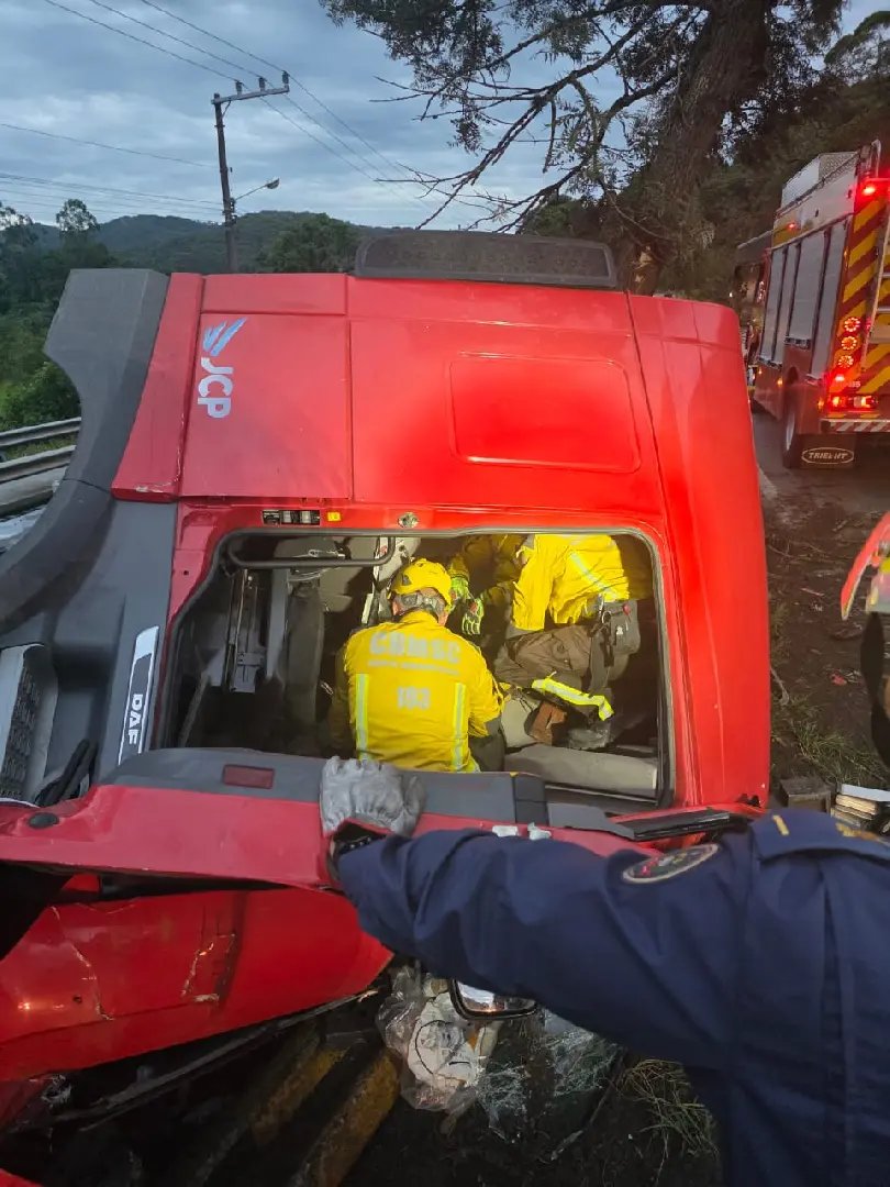 O motorista do caminhão de cimento ficou preso nas ferragens. As equipes dos bombeiros de Santo Amaro da Imperatriz realizaram o desencarceramento, mas o condutor não resistiu aos ferimentos e teve o óbito confirmado no local.